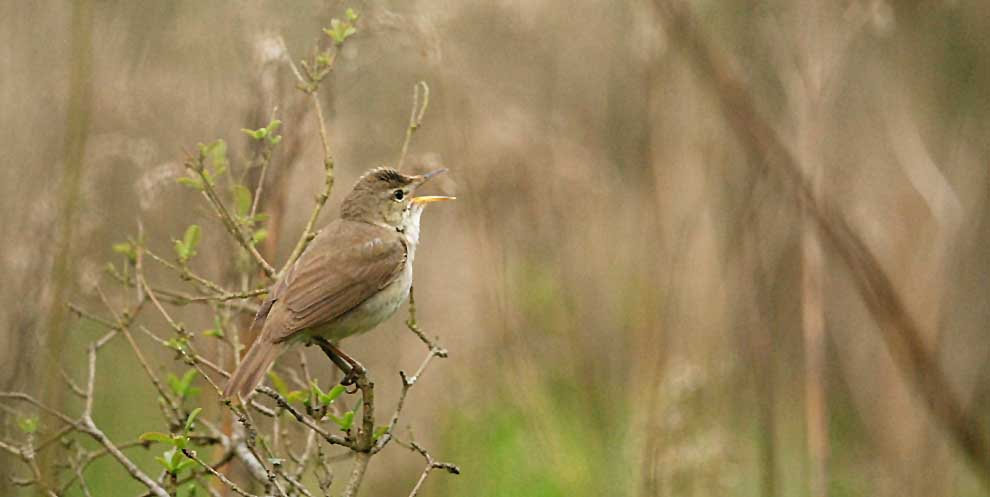 Det er påfaldende, som denne og andre arter (acro'er, hippolaiser og værlinger især) altid i felten (se feltfotos) har rejste pandefjer, og ALTID håndholdt lægger fjerene ned - og dermed ser lidt kinky ud på håndbilleder.