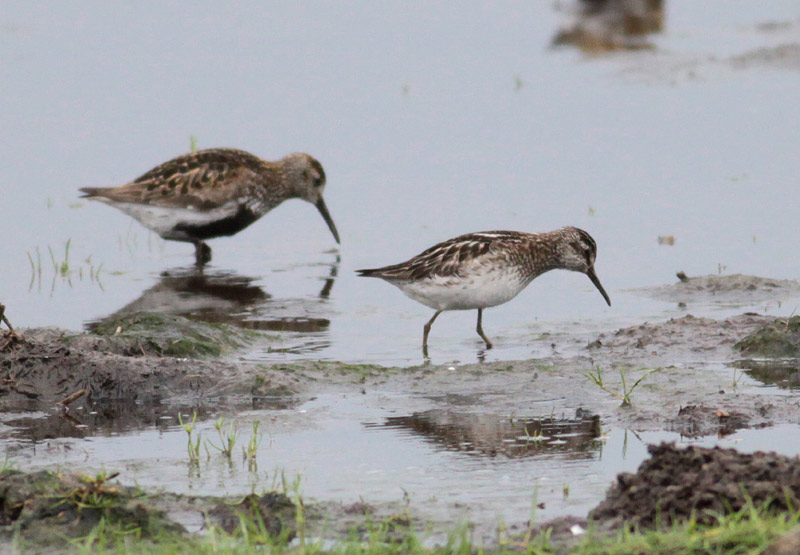 Kærløberen her viser alle forskelle fra Almindelig Ryle; 80% størrelse, koldt sortbrune dragtindslag m.m. De fleste adulte Kærløbere er på dette tidspunkt meget slidte, og oftest er brystet nærmest ensartet brunsort, og de hvide tegninger på ryg og skulderfjer normalt næsten afslidte; hovedtegningerne bevares bedre. Denne fugl er nok en adult i ualmindeligt velbevaret sommerdragt, men skulderfjerene - der i vinterdragt bliver grå - virker her usædvanligt friske.