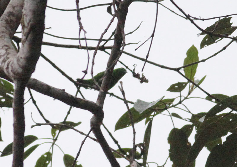 Beskrivelse: Når grønt er grønt - som de to andre Chlorochrysa-tangarer er denne en hurtig smutter i trætoppene, der mest afslører sig i hastige glimt - som en smaragd på speed, endnu grønnere end noget blad og med den delikate røde og sølvfarvede øreplet akkurat synlig.