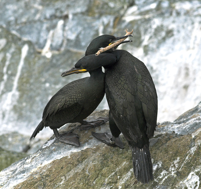 Beskrivelse: Når Topskarverne kurtiserer hinanden,er det ofte en lang, blid og yndefuld affære. Her overbringes en lille pind som gave.