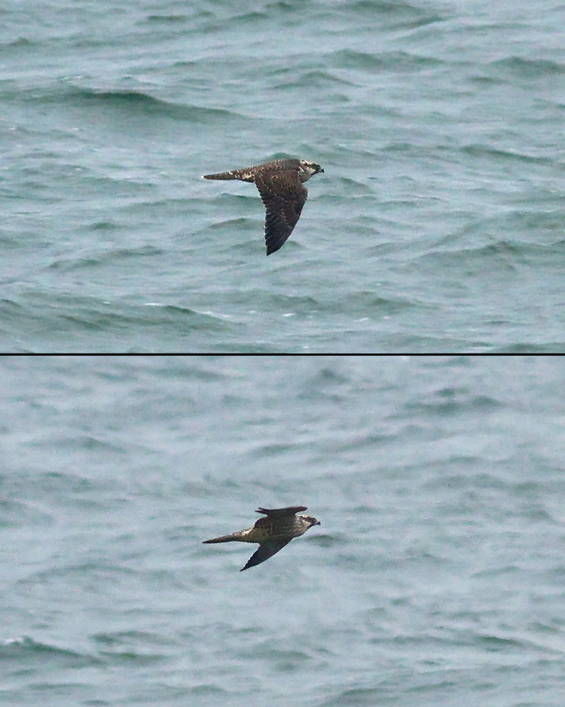Igår så jeg en 1k vandrefalk i Pulken som meget lignede denne, bortset fra, at den havde lysegrå overgump og kraftigere båndet hale. Den var således endnu lysere end denne fugl og havde svagere ansigtstegning, nærmest reduceret til banditmaske. Fik desværre ingen billeder, trods flere seriøse forsøg på at komme på skudhold.