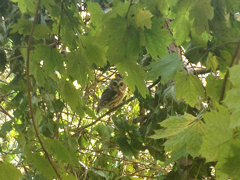 Beskrivelse: Was very surprised to find this little guy active at noon, chasing birds in a bush. Otherwise New York is mostly known for its night life. Wish I had a real camera with me, but Netfugl seems to be missing pictures of this cutest owl.