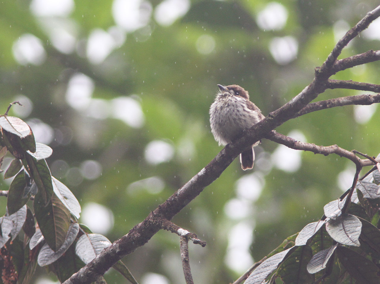 Beskrivelse: We were extremely lucky to see this rare and very elusive species of Puffbird. The bird was perched relatively high in the forest above the road to the Copalinga Lodge. It was quiet and almost without movement.