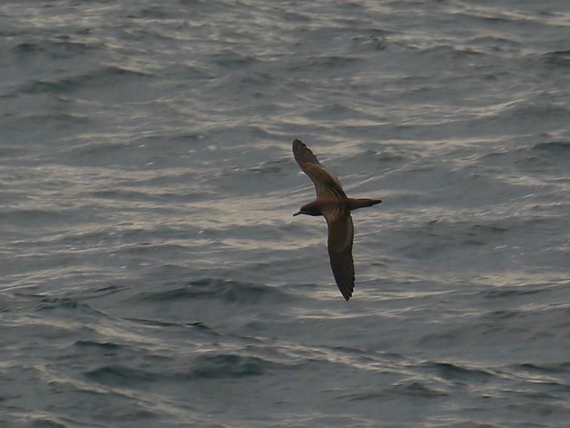 Dette er en wedge-tailed shearwater (kilehalet skråpe - Puffinus pacificus). Fremragende billede, som tydeligt viser den lange hale, det spinkle næb, de lyse kanter på de indre armdækfjer og de svagt lyse armsvingfjer. Arten er karakterfugl ud for Sydney. Tillykke med billedet - arten er svær at fotografere ! VH Niels