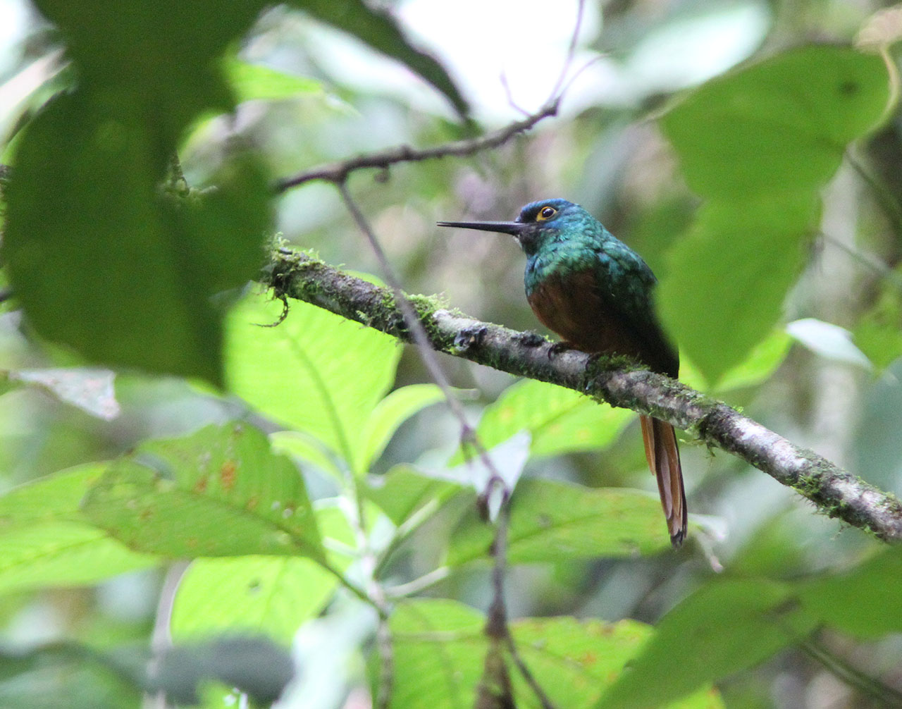 Beskrivelse: Another pay-off from the long morning trek through the cloud forest of the Podocarpus National Park. Like Highland Motmot, seen on the same trek very close by, it was very quiet and very well camouflaged in the dense forest. One of many great and rare birds seen this morning.