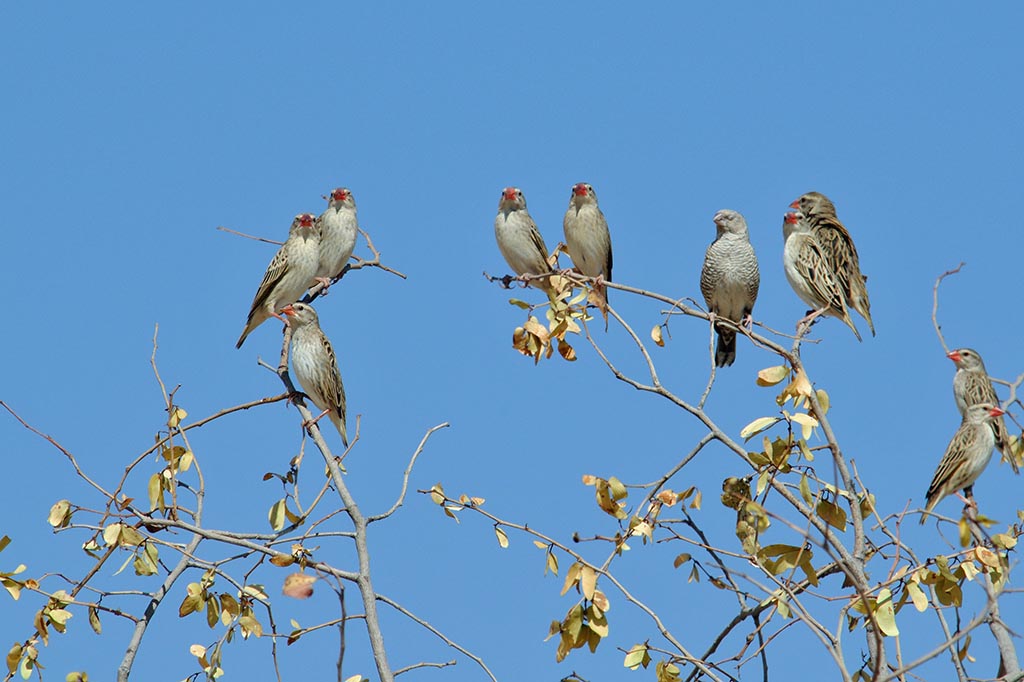 Beskrivelse: Jeg kan ikke bestemme fuglen i midten - evt. en finke???