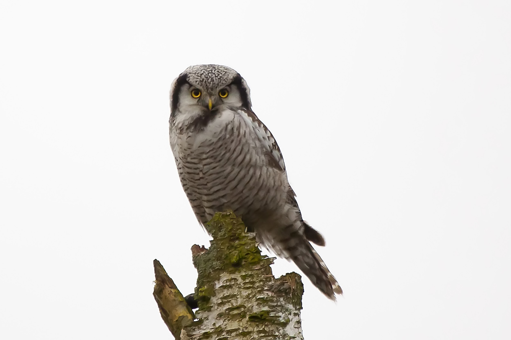 Beskrivelse: Fuglen havde sat sig på toppen af en knækket stamme, lige ved vejen igennem birkelunden. Gode betingelser for et billede. Bortset fra lyset.