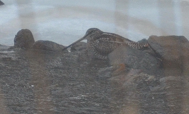 Beskrivelse: Foto taget i dårligt lys med slud/snevejr ved en lille isfri strøm udenfor indgangen til Sydkorea´s botaniske have.