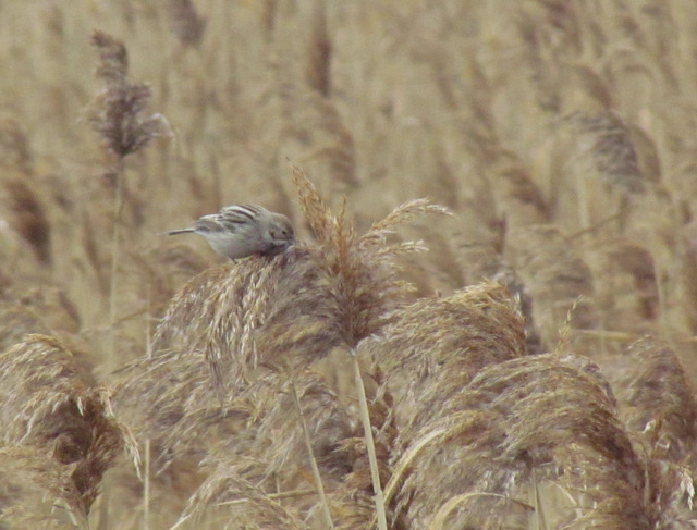 Beskrivelse: Sammenlignet med Rørspurv, en mindre fugl med et helt andet, spurvelignende kald.