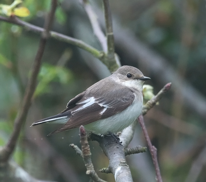 Bestemmes især på den artsspecifikke, hvide ”dråbe”, eller tydelige, hvide lille streg vinklet ned på vingepanelet.