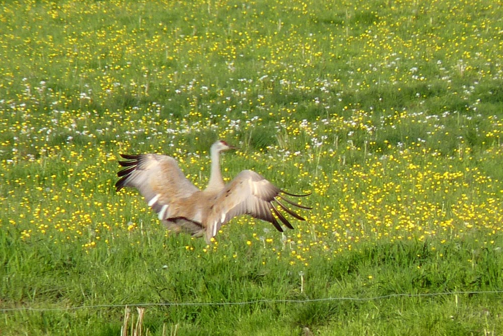 Kunne der være tale om en 2k fugl, da den mangler nogle fjer inde på de inderst armsvingfjer..?? Undre mig lidt over dragt, men har ik kendskab til dennes tranes fældning.. Eller måske en 3k, det er jo store fugle som mange gange er flere år om at komme i adult dragt..