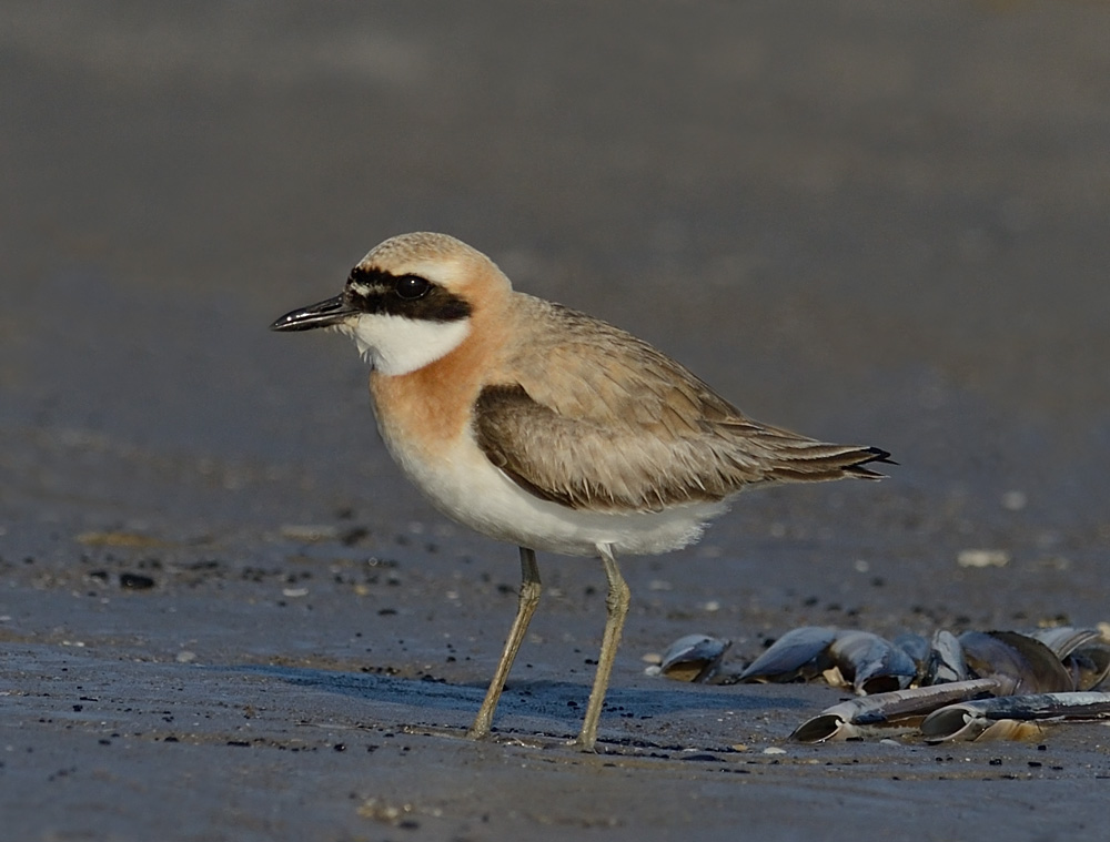 Jeg har checket mine fotos af columbinus fra Israel og foråret, og fuglene varierer ganske meget. Ingen har dog så distinkt sort maske som denne fugl, og så små og distinkte hvide pandepletter. Nogle har næsten ingen pandepletter, men altid nogle hvide fjer, der nærmest giver indtryk af meget diffuse felter - andre har store hvide pletter, som vist i Fugle i Felten. Generelt har fuglene bredere og en anelse lysere rustbrunt brystbånd, og en del har desuden ret udbredte rødbrune felter i issen. Benene synes hos alle columbinus ret lyst grøntonede.