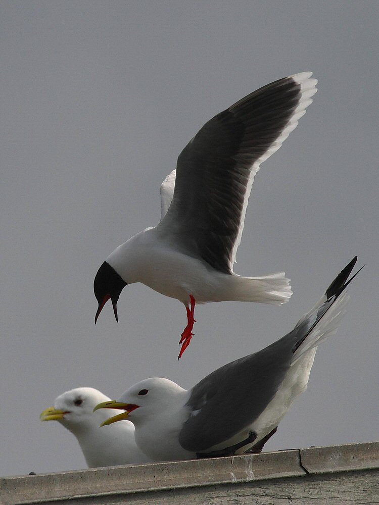 Beskrivelse: Riderne i kolonien på Pier 2 i Hirshals havn blev intensivt angrebet af dværgmågen. Først var det ynglende fugle og senere de som sad på taget. Det hele varede ca. 3 minutter. Med 400m linsen var jeg desværre lidt for tæt på.