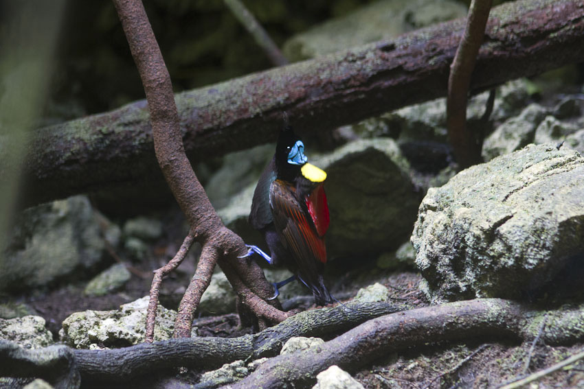 Unik, næsten surrealistisk farvet fugl - se også dens halekrøl på fx Wikipedia.