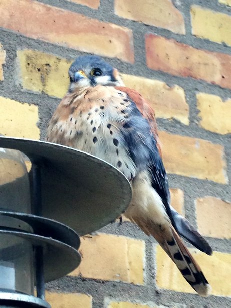 Denne flotte falk kom desværre ikke til sin sædvanlige overnatningsplads natten mellem lørdag til søndag. Den har for øvrigt ingen synlige stropper eller lignende. Det er ikke sikkert den selv har fløjet hele vejen fra Amerika, men kan have benyttet et af de mange krydstogtskibe, der anløber København.