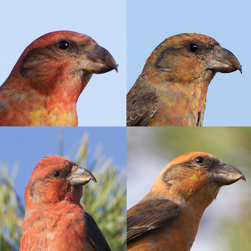 Beskrivelse: Lille/Stor Korsnæb kan være meget forskellige både i farver og statur, men en sjov lille ting er at næborientering også kan være både venstre- og højrevendt.
