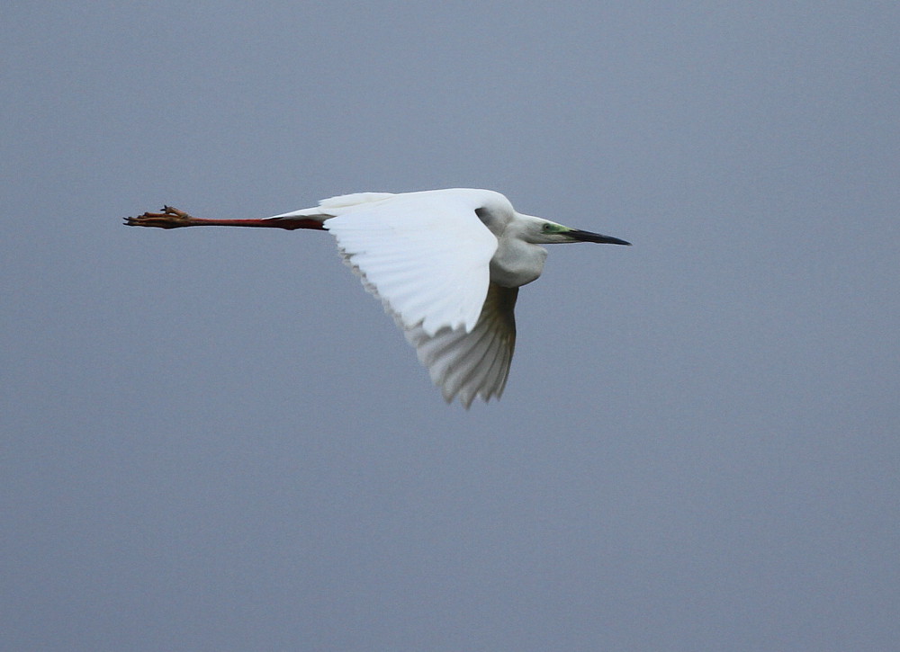 Beskrivelse: Denne sølvhejre, som jeg formoder det er, skilte sig ud fra de andre 28 ved at have sort næb og røde ben. Jeg har læs, at sølvhejren har sort næb i yngletiden, men er det så ikke lidt sent? Benene burde vel være sorte, eller skifter de også farve???