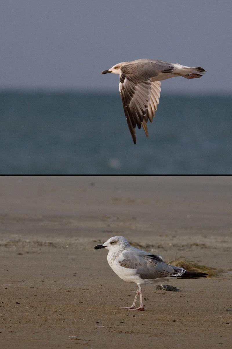 Beskrivelse: Middelhavsmåge i denne alder er lettere i forhold til 2K-fugle.