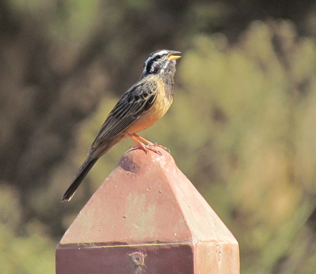 Beskrivelse: Cinnamon-breasted Bunting er en af flere afrikanske arter, hvis udbredelse er 'skvulpet' over det Røde Hav og ind i det sydligste af den Arabiske Halvø.