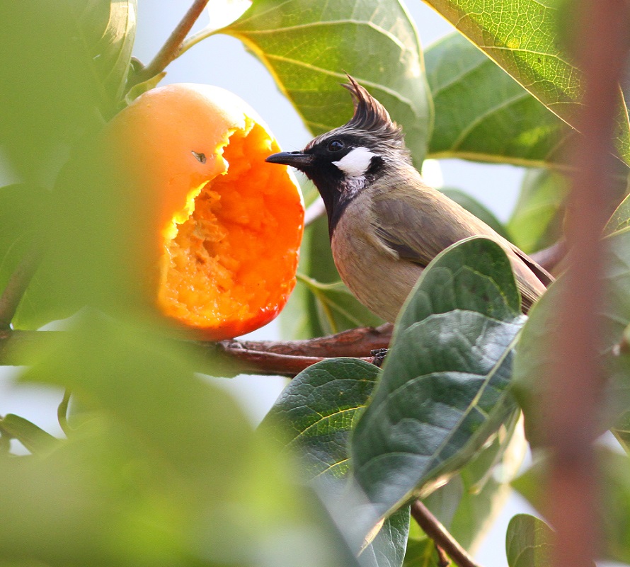 Beskrivelse: Eating Persimmon fruit.