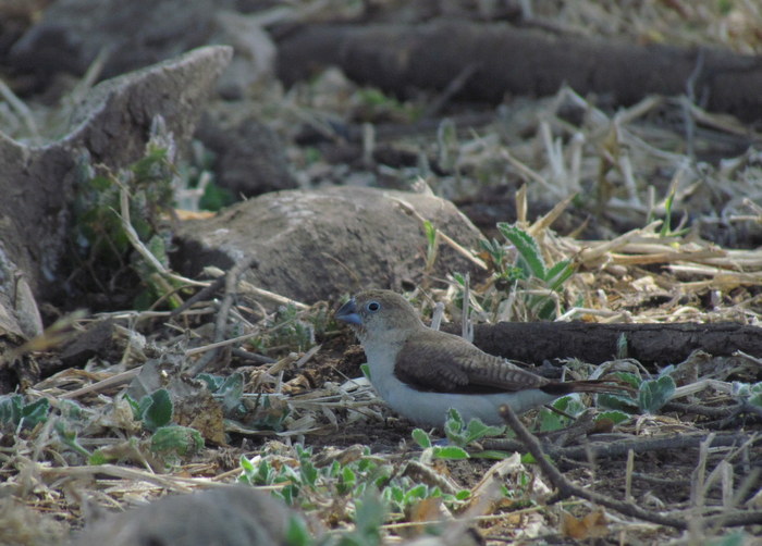 Beskrivelse: Udover den mørke overgump adskiller African Silverbill sig også fra den lignende Indian Silverbill på de båndede dækfjer.