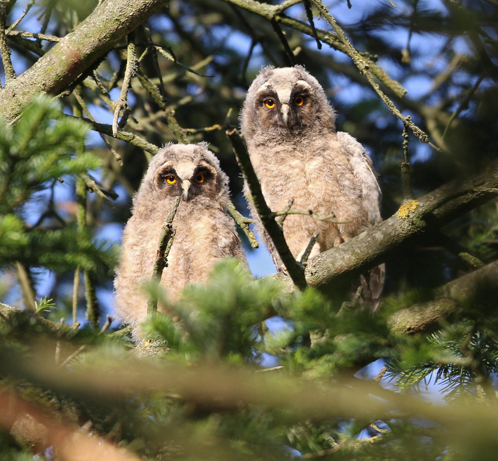 Beskrivelse: Der var i alt fire unger i Grantræerne.
