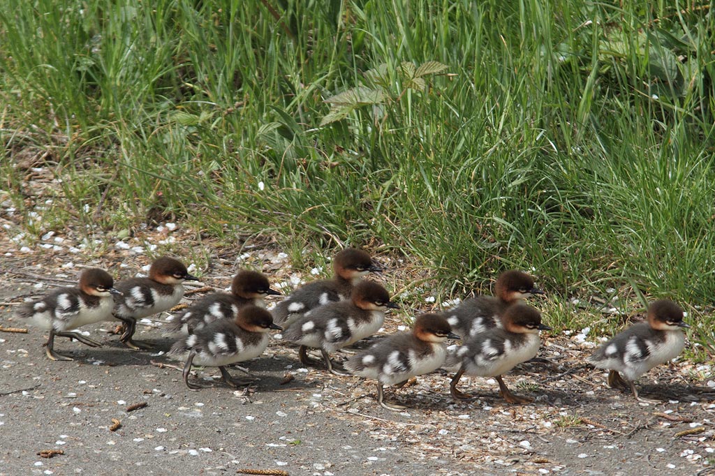 Titel: De nyklækkede unger føres til vandet