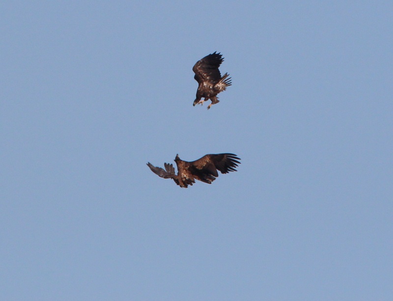 Beskrivelse: Unge Havørne i leg over Røgbølle Sø.