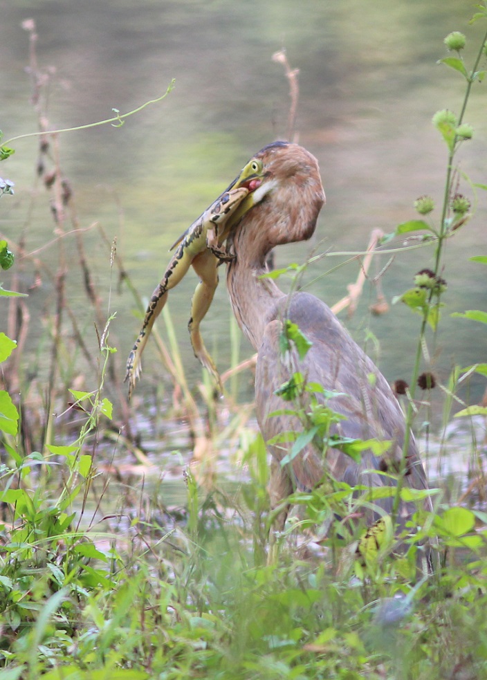 Beskrivelse: Thattekaad is justifiably famous for its Sri Lankan Frogmouthas. Here this Purple Heron here gives an alternative meaning to "Frogmouth".