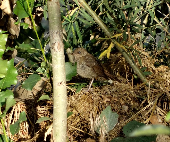 Beskrivelse: Midt i juli var det begrænset, hvor meget de Sydlige Nattergale sang, men lidt havelusk omkring vandløbet i landsbyen afslørede et par med nyudfløjne unger.