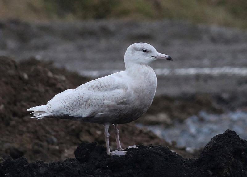 Fuglen er ret lille og rundhovedet og der er lidt af hvidvinget måges jizz over den, men næbber er for langt og øjnene for små - indtrykket er fortsat af en sølvmågetype, hvor hvidvinget typisk har stommågeagtigt rundt hoved, kort næb (hos 95% med mørkere bases end hos denne fugl) og større øjne, der giver hvidvinget et sødt udtryk ala stormmåge.