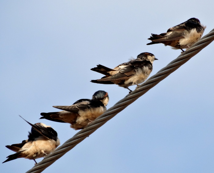 Første indskydelse var snavsede bysvaler, men med mere dagslys, kunne de bestemmes til den ofte ret lokalt forekommende Preuss's Cliff Swallow.