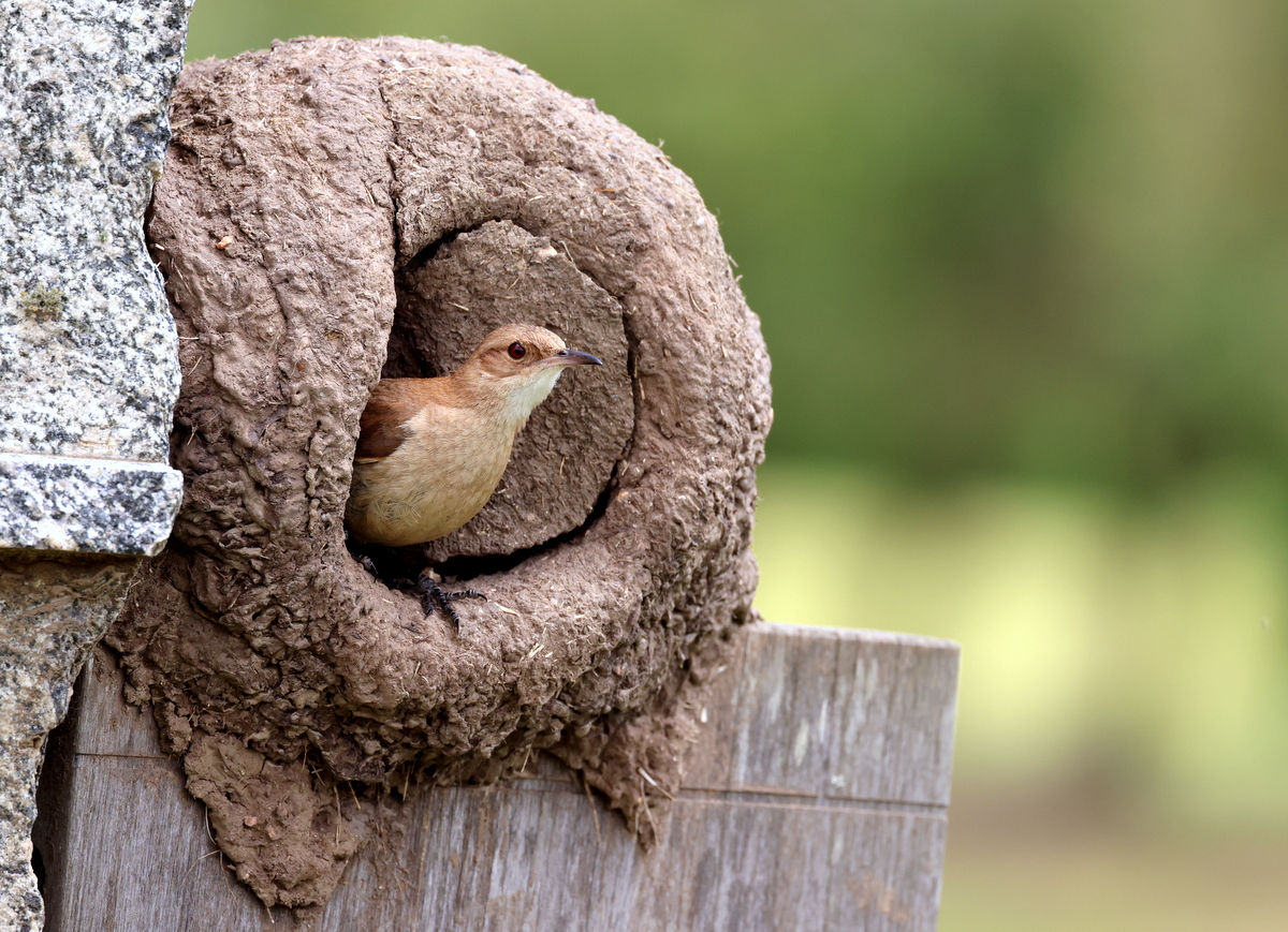 Titel: The Hornero’s are normally building their oven-nest with wet soil and clay….. but some parents are as it seems here happy with a shithouse