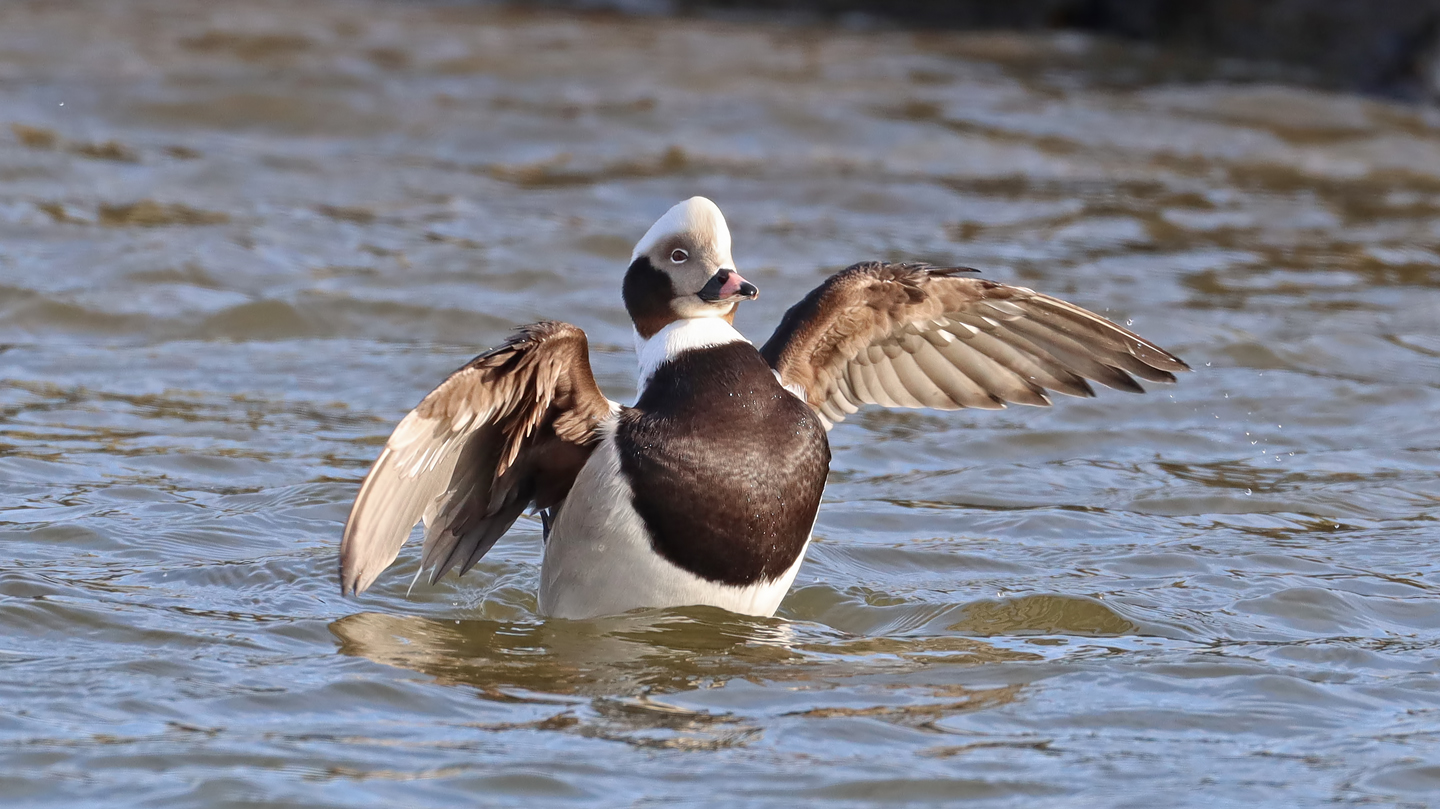 Beskrivelse: Hannen slår med halen på vandet for at imponere hunnerne.