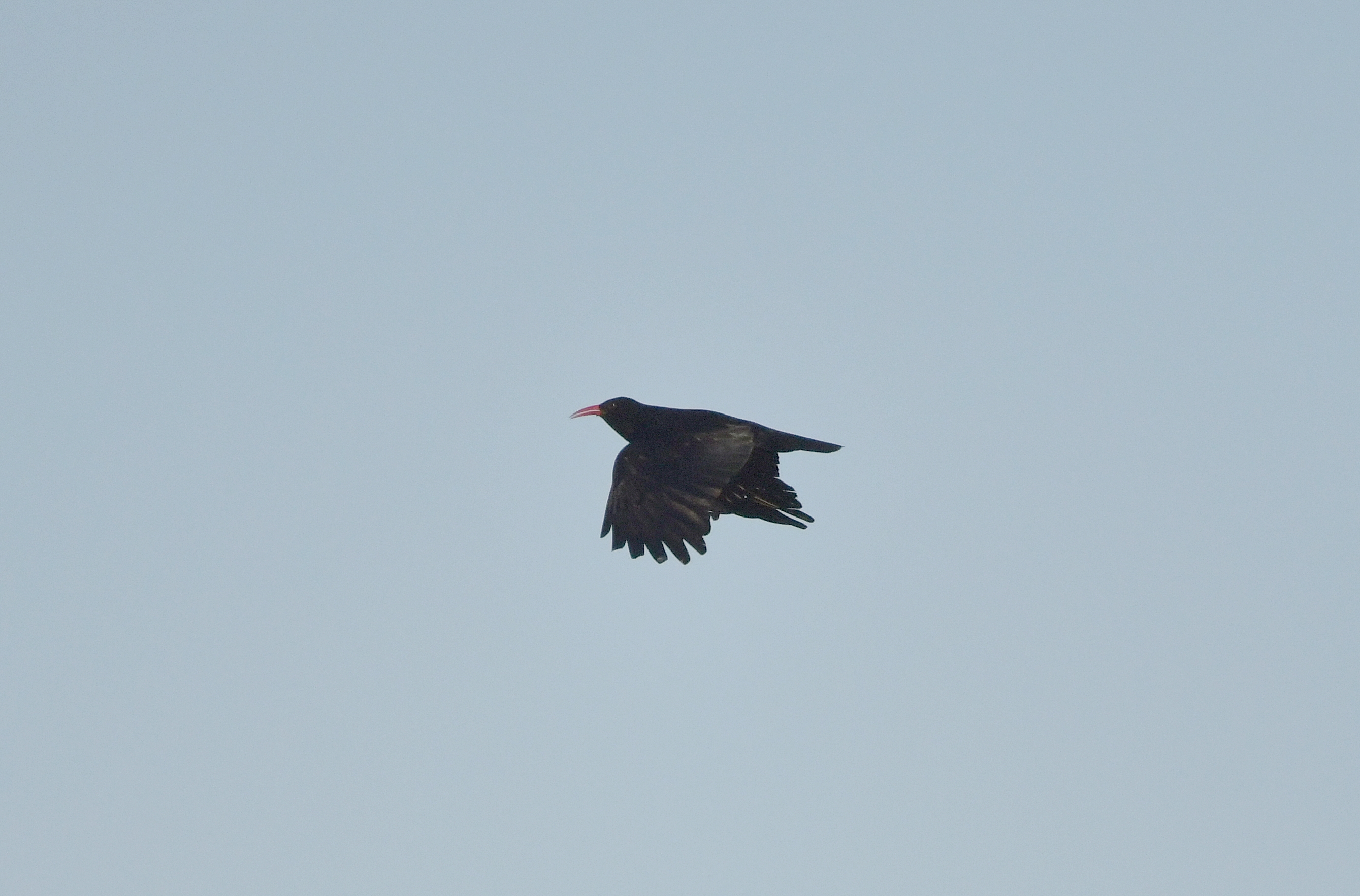 Alpekrager såvel som andre mørke kragefugle er altid en udfordring for fotografer - der skal overeksponeres og derfor kan omgivelserne ofte bliver overbelyste... og kun sjældent bliver man helt tilfreds - til gengæld er de en sjov fugl, og ganske nydelig med det røde næb og bentøj.
