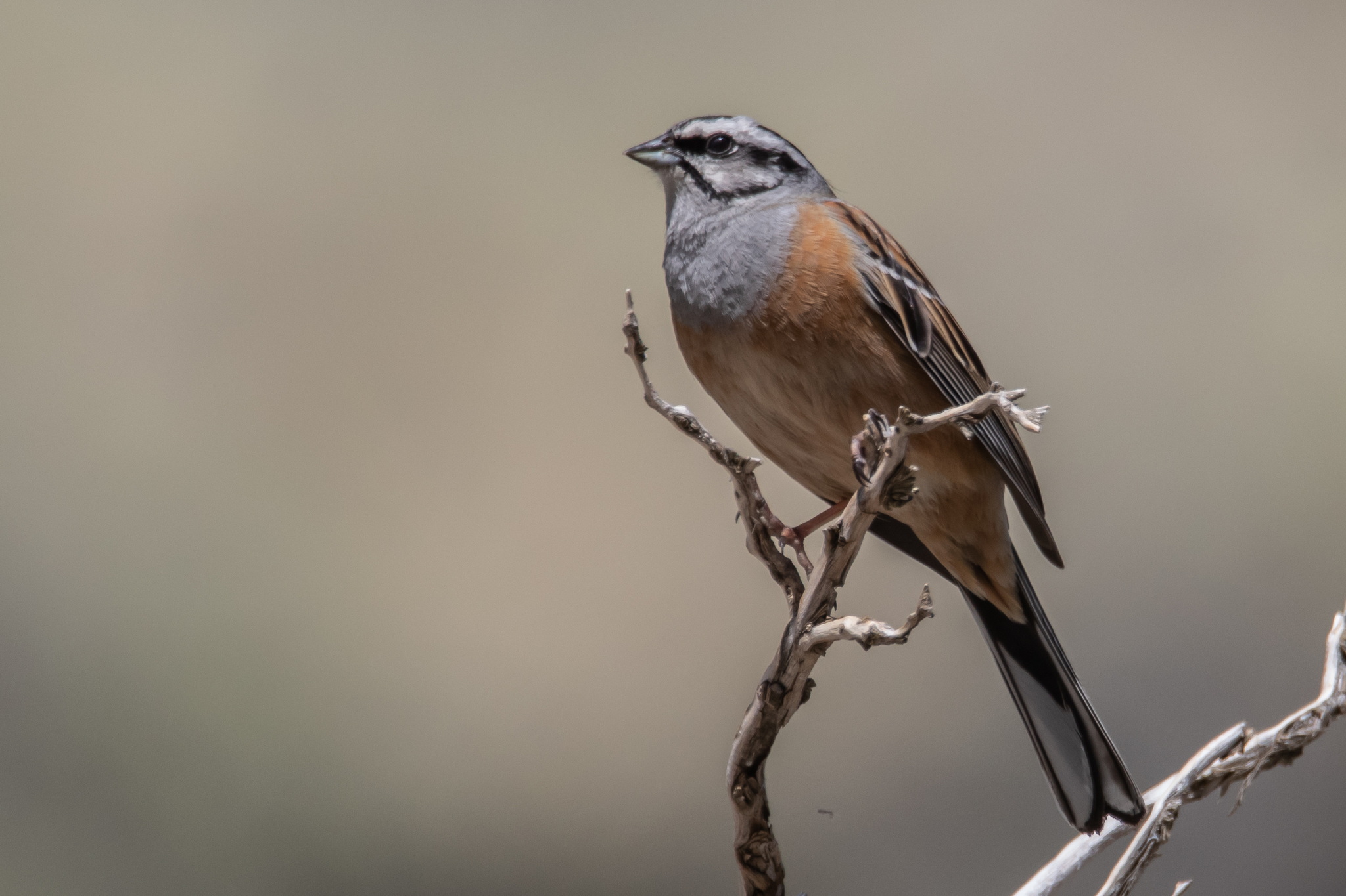Beskrivelse: Den flotte race af Klippeværling (<i>Emberiza cia stracheyi</i>) i Kashmir, som har markante ansigtsstriber og ren, rødbrun, skarpt afsat underside.