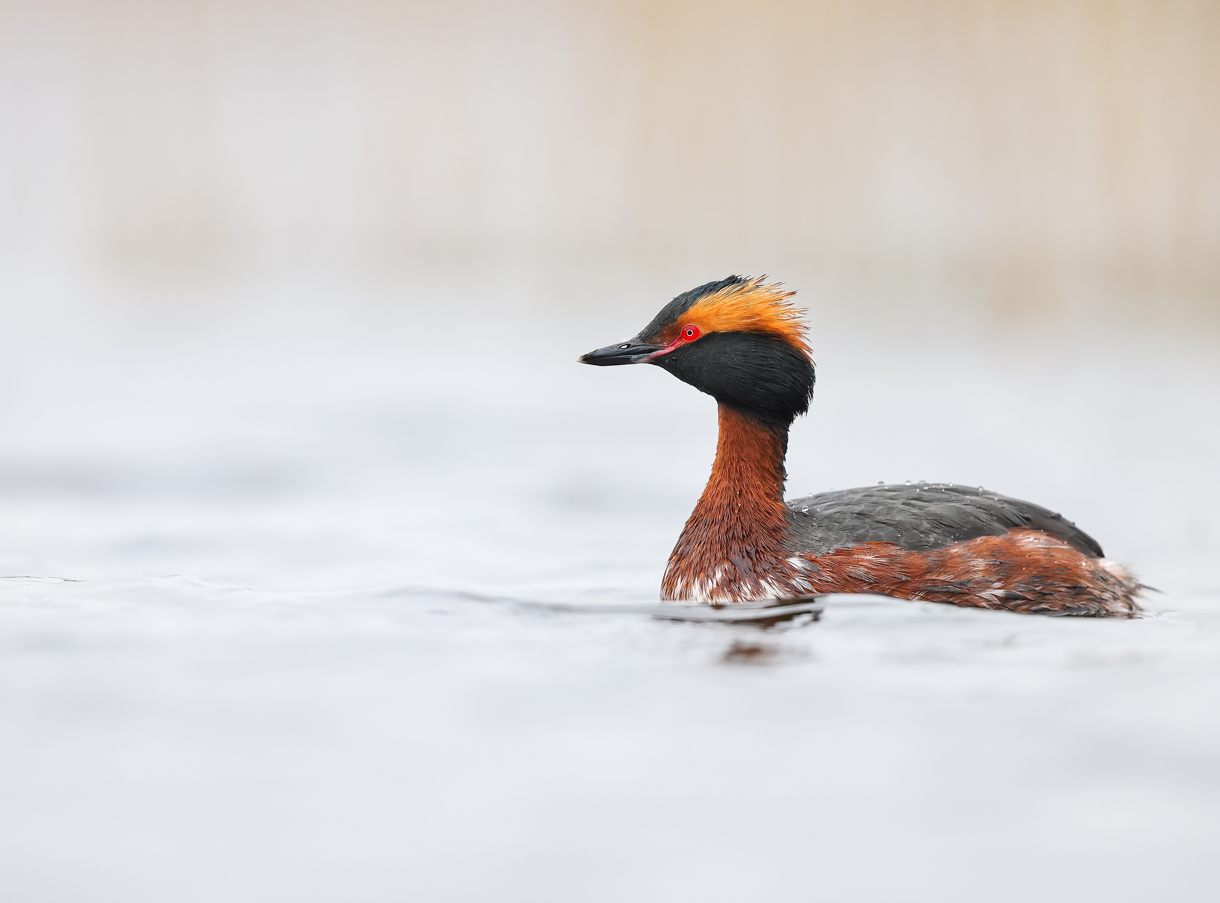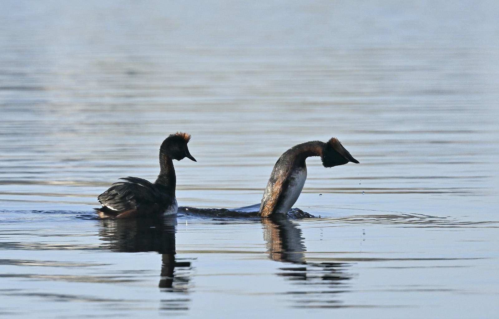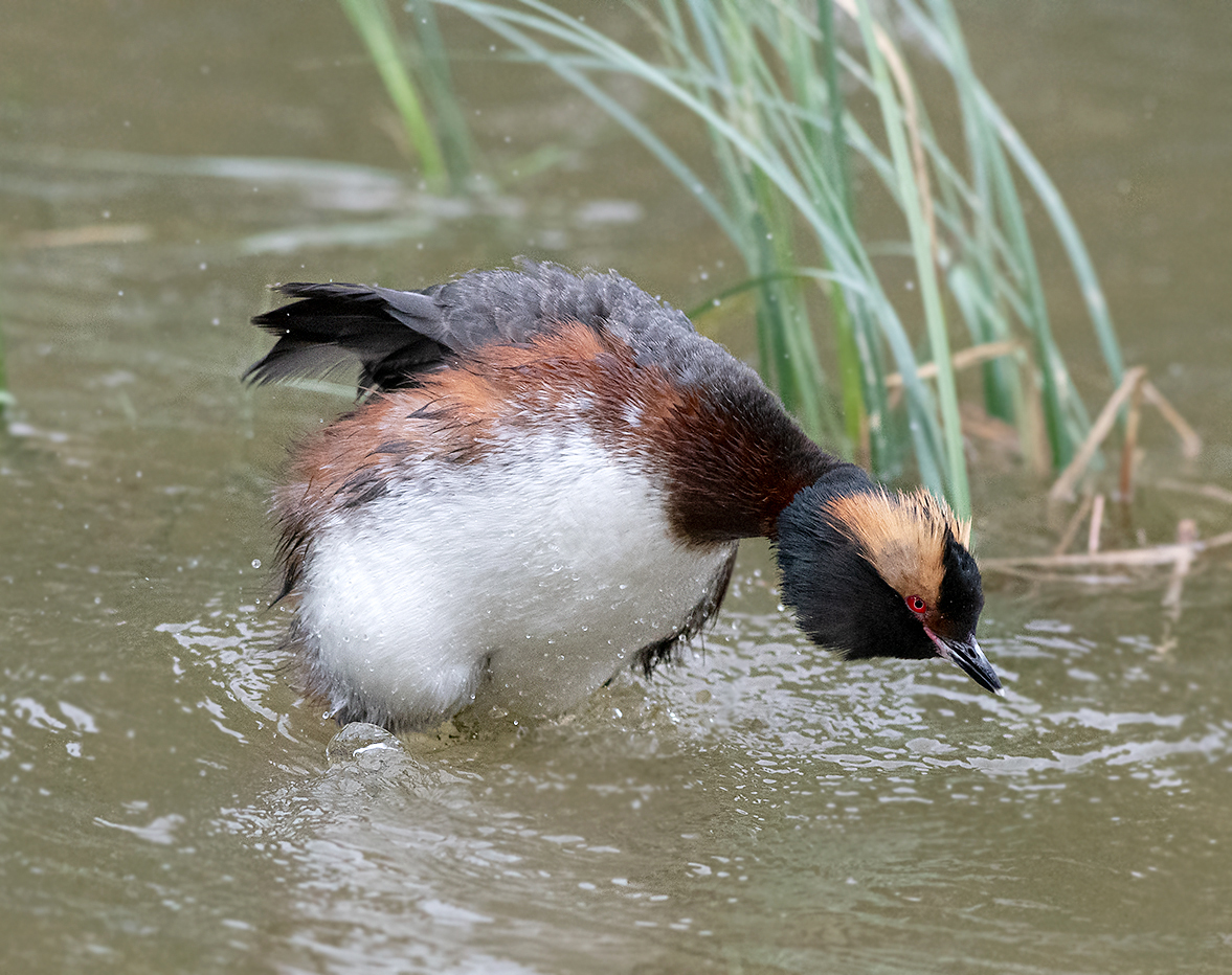 Titel: Nordisk Lappedykker, han ved overspringsbevægelse
