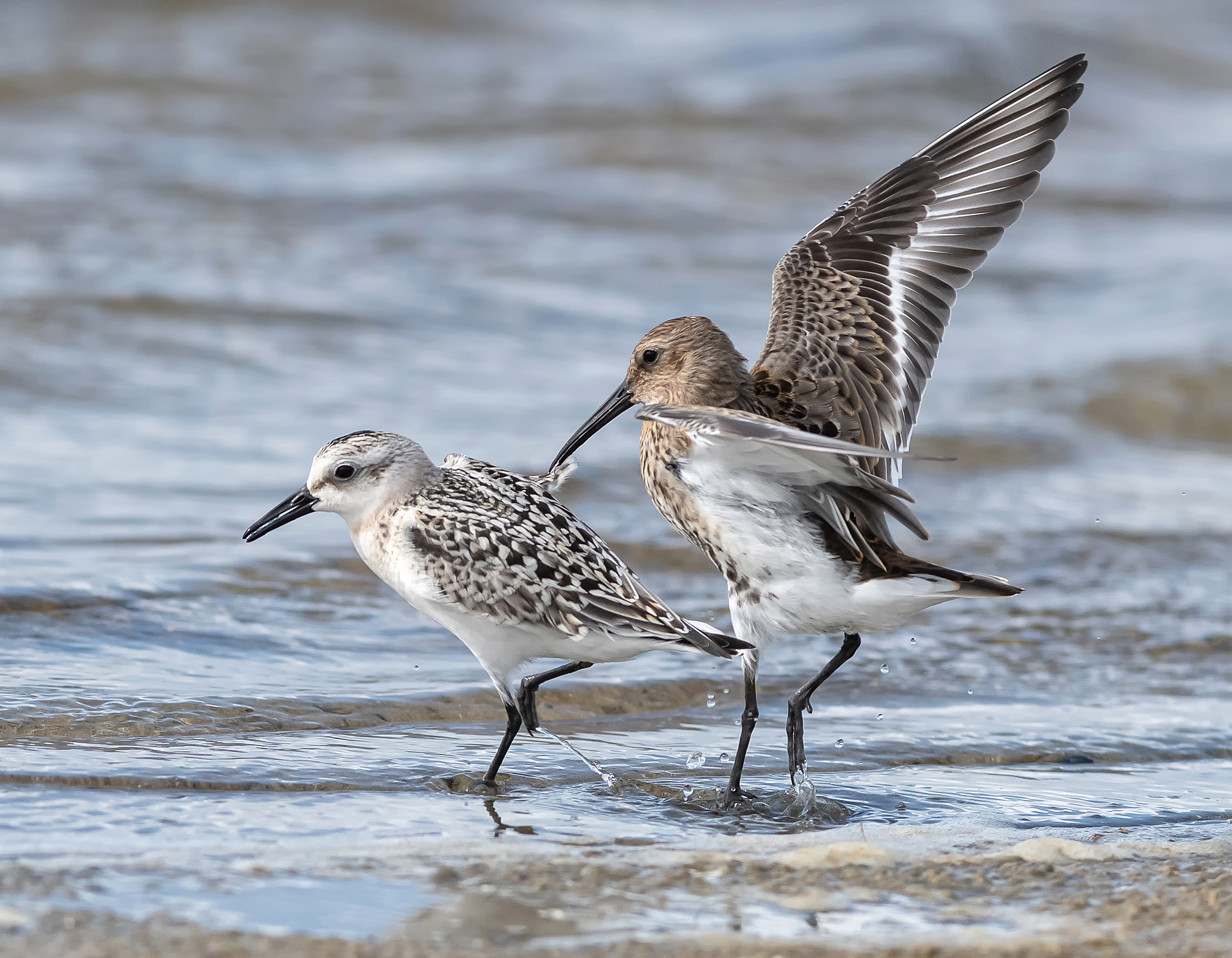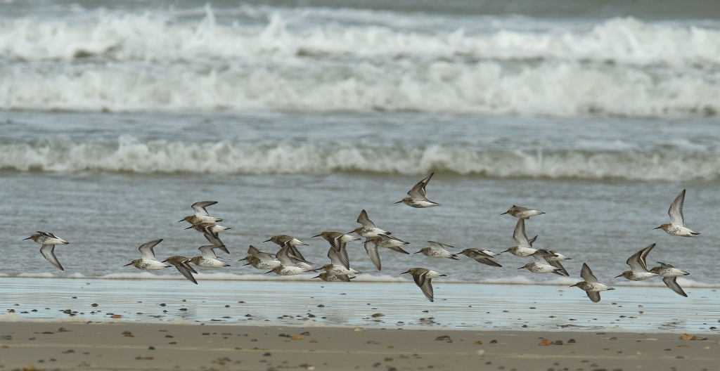 Genfundet d.24 maj 2023 kl.20.30 fødesøgende i en flok Almindelige Ryler på faldende vand ved Ballum Sluse ,