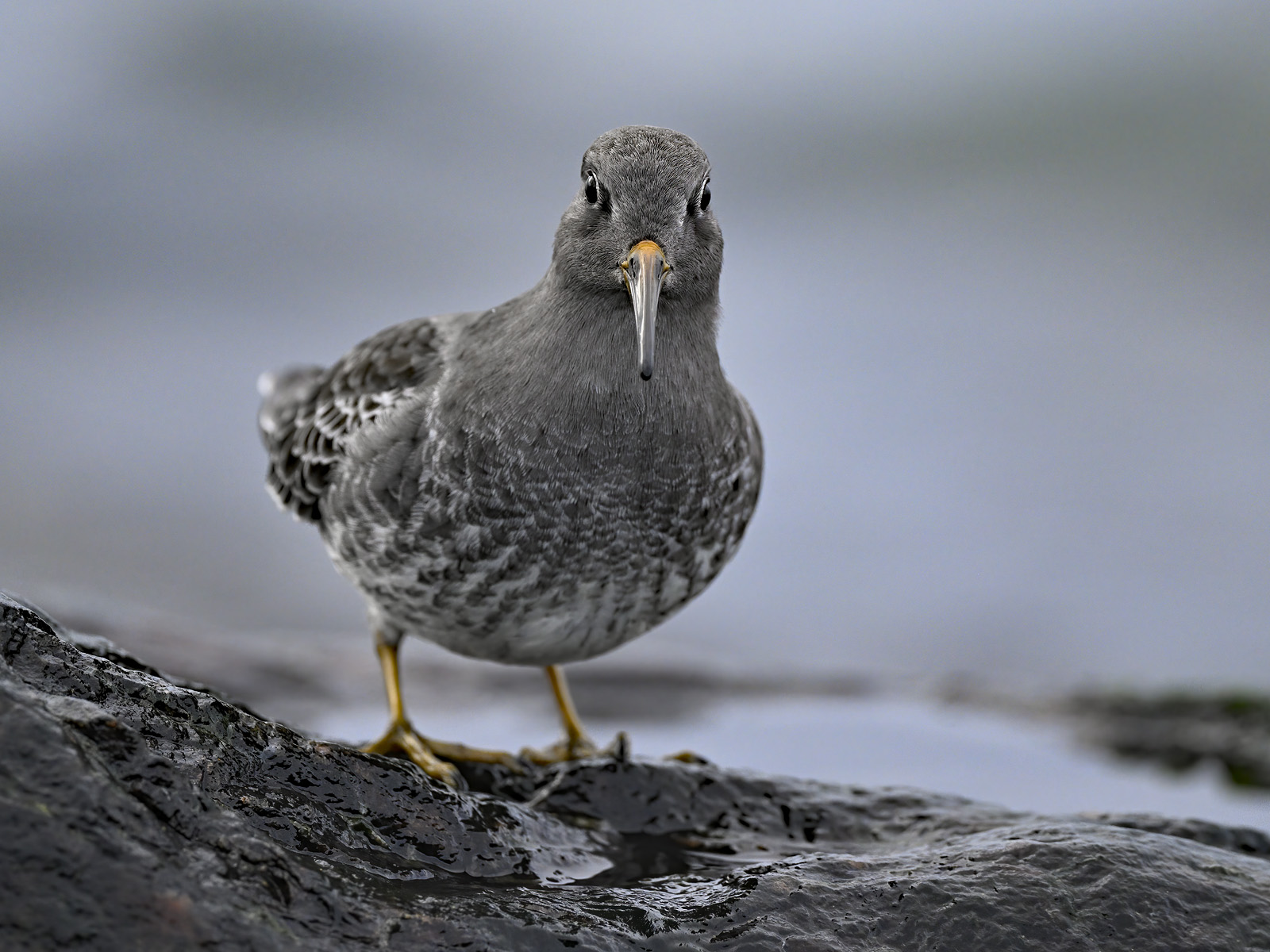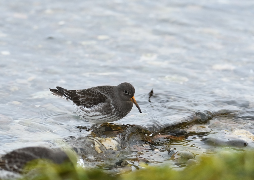 Beskrivelse: Så 15 sortgrå ryler på molen i Hvidesande. Væksterne på stenene siede smådyr fra bølgerne.