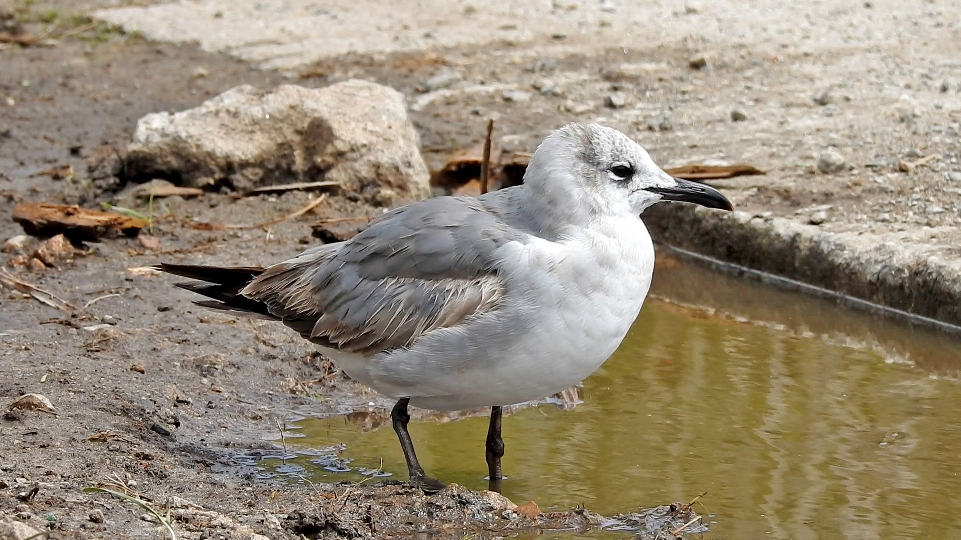 In addition to the four Laughing Gulls and the single Ruddy Turnstone there is a (second calendar-year) Bonaparte’s Gull in the picture.