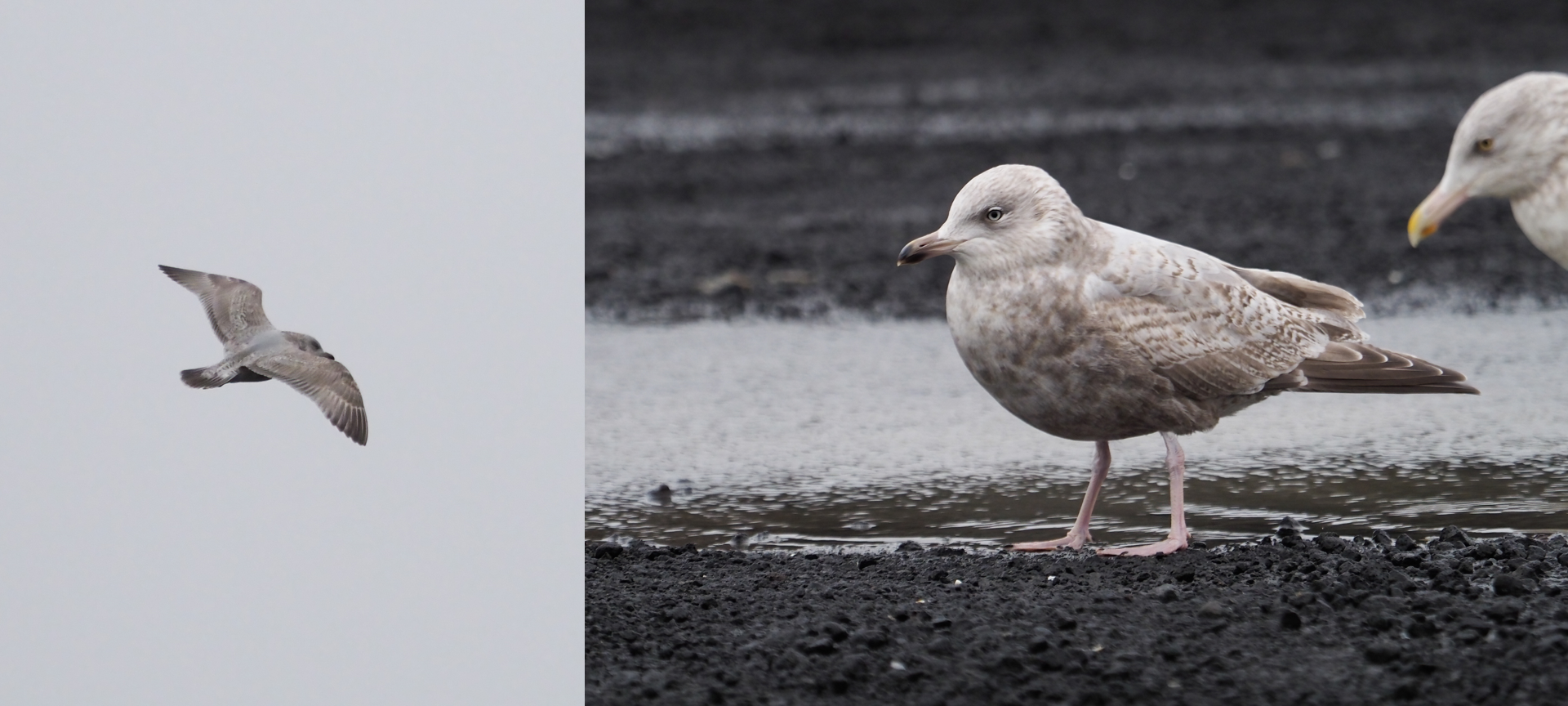 Tak for kommentarerne. Det må være den fugl, der også er dokumenteret 21.1. Fed var den, og den gjorde i felten det ret typiske kumlien´s indtryk: en Hvidvinget Måge der trænger til at blive vasket.
