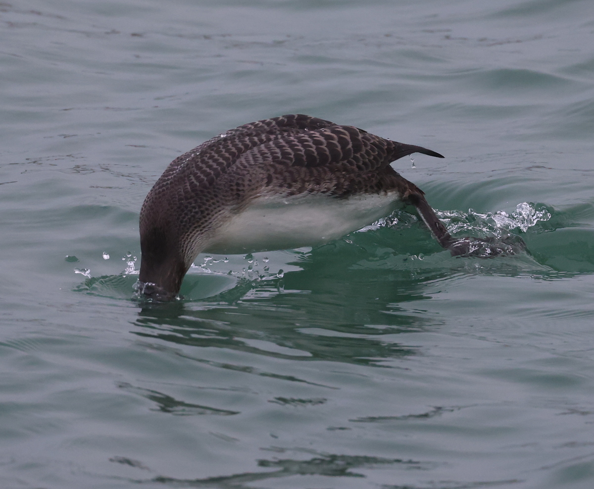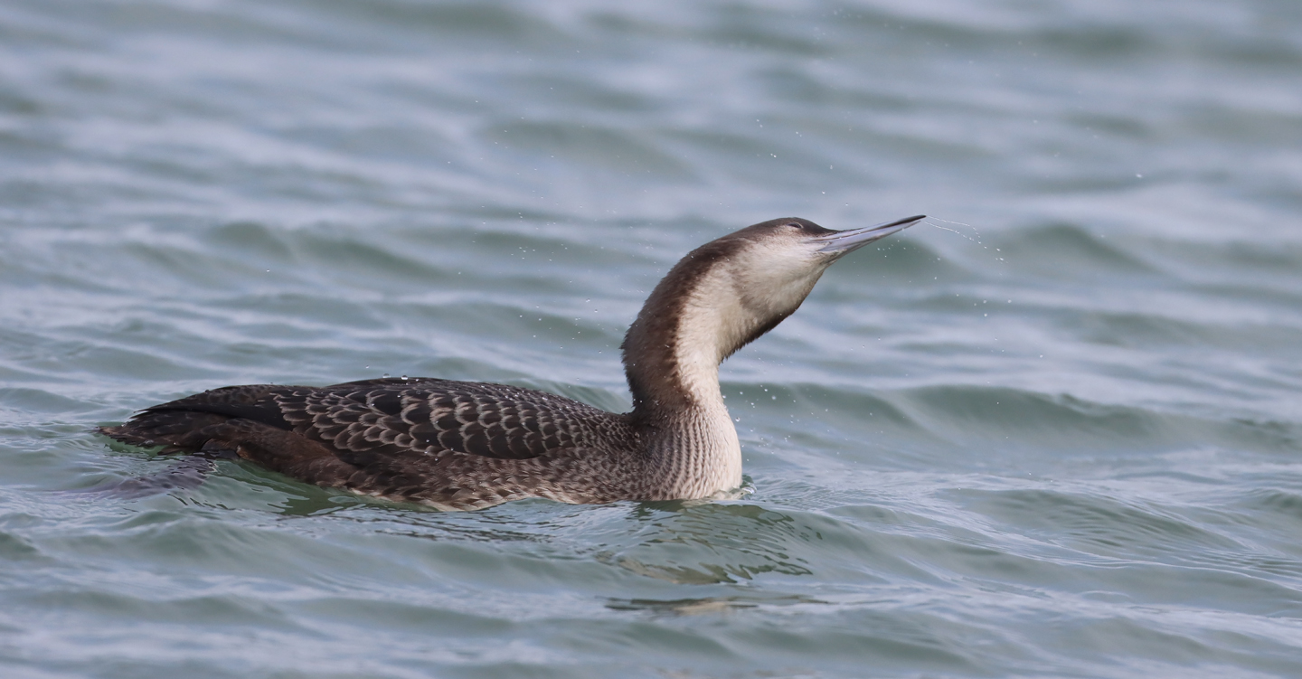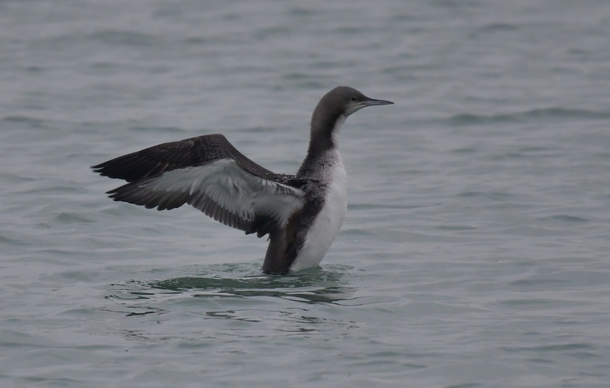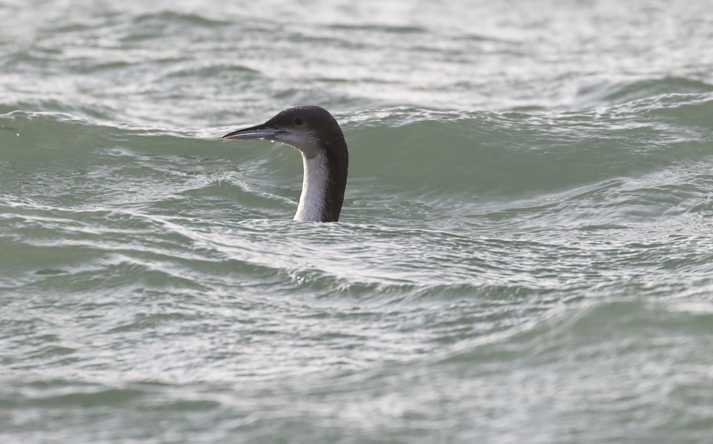 Beskrivelse: Vingeslag forfra med streg under hagen "chinstrap".