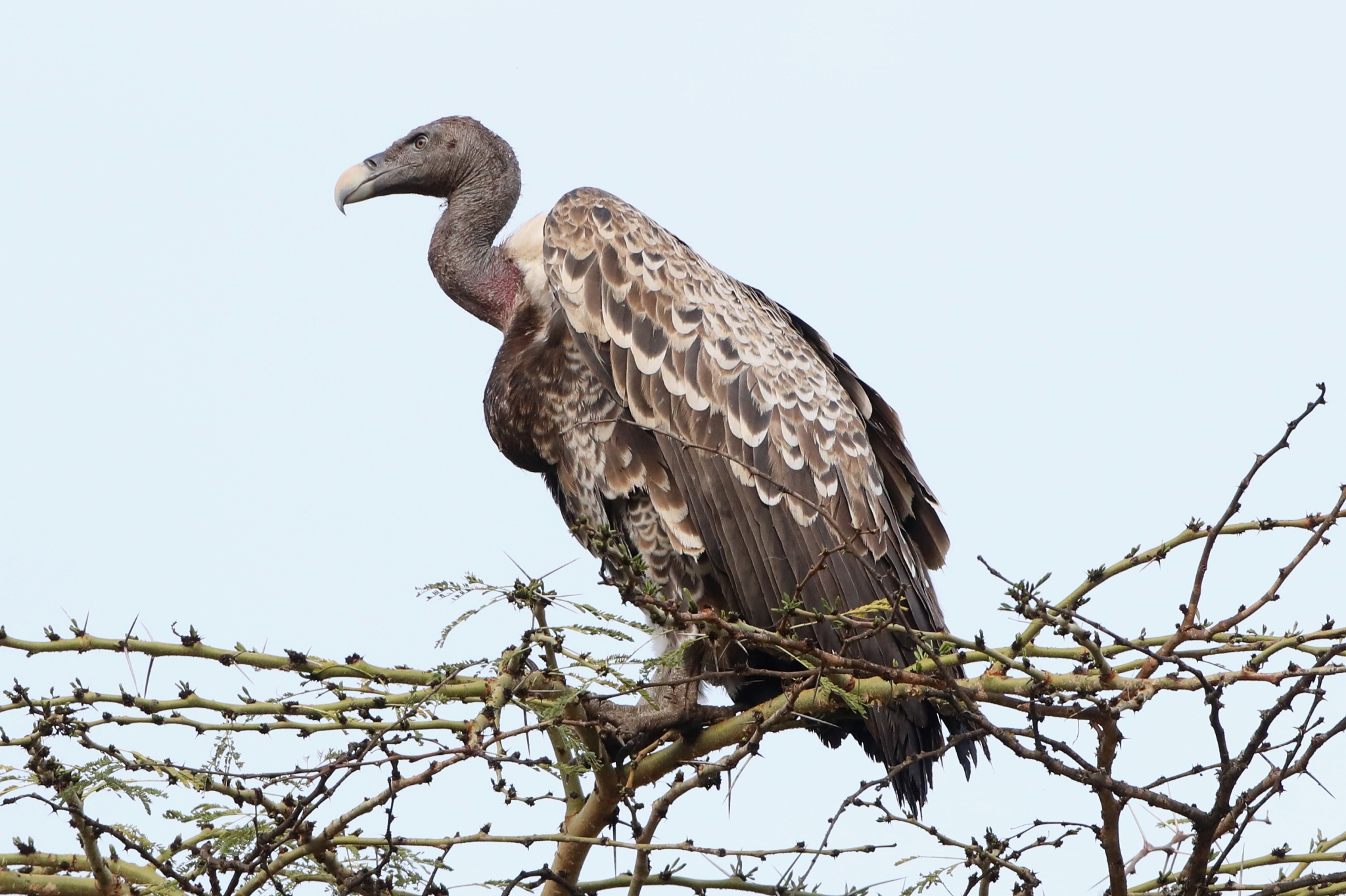 Smaller than Griffon Vulture with cold tones, the adult are easy to catch in a group of Vultures.