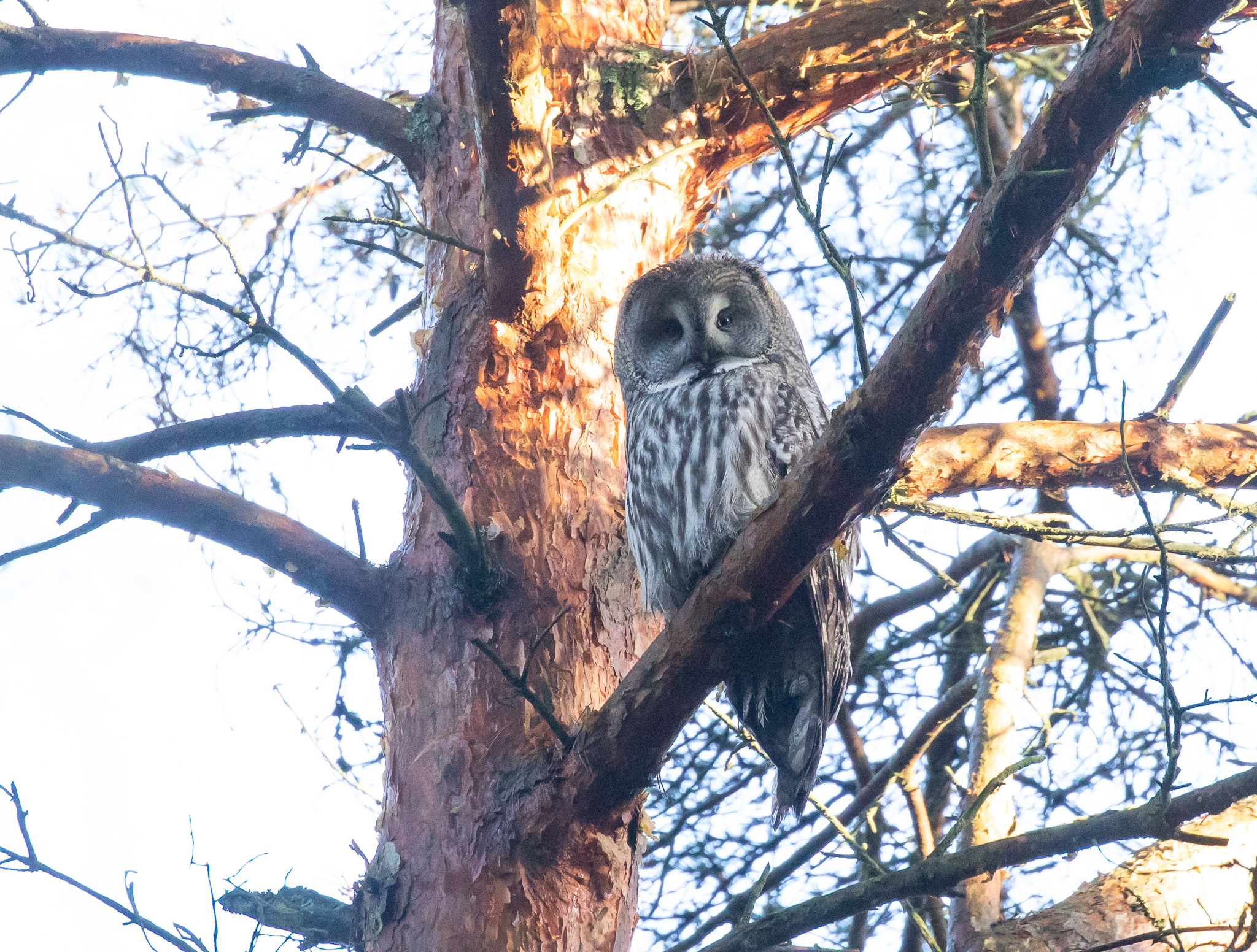 Beskrivelse: Uglen set i perioden fra Nytårsdag til foreløbig 10. januar 2023 rastende typisk højt i ældre fyrretræer