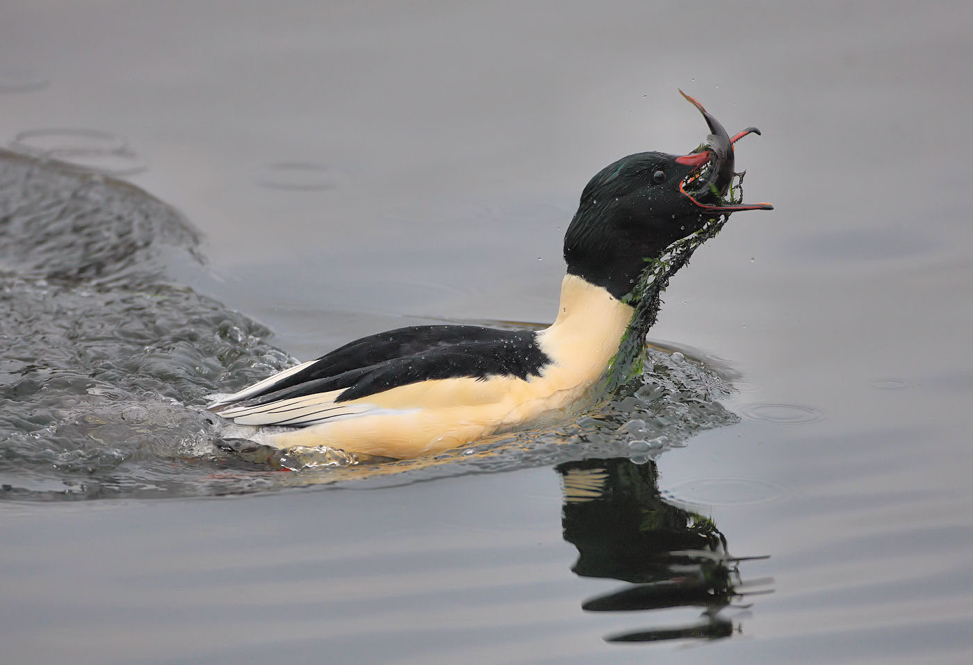 Beskrivelse: En usædvanlig oplevelse - skallesluger med fisk på overfladen.
