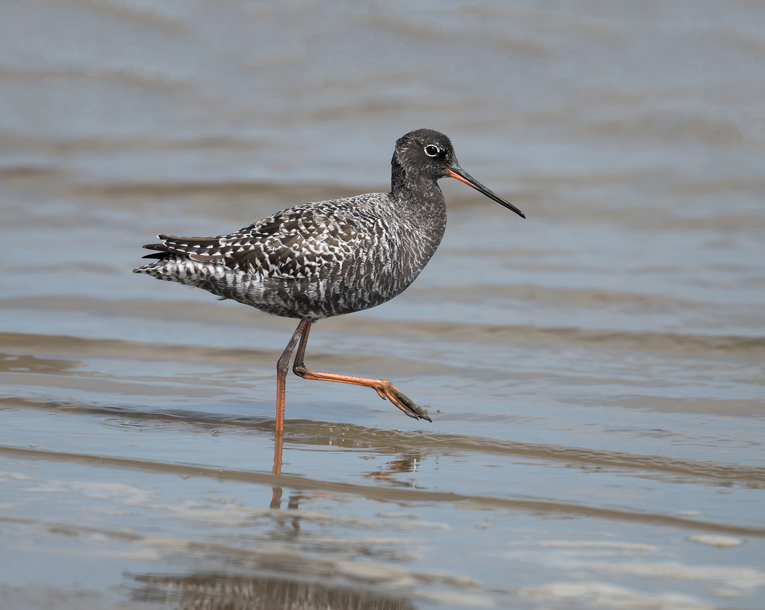 Genfundet d.24 maj 2023 kl.20.30 fødesøgende i en flok Almindelige Ryler på faldende vand ved Ballum Sluse ,