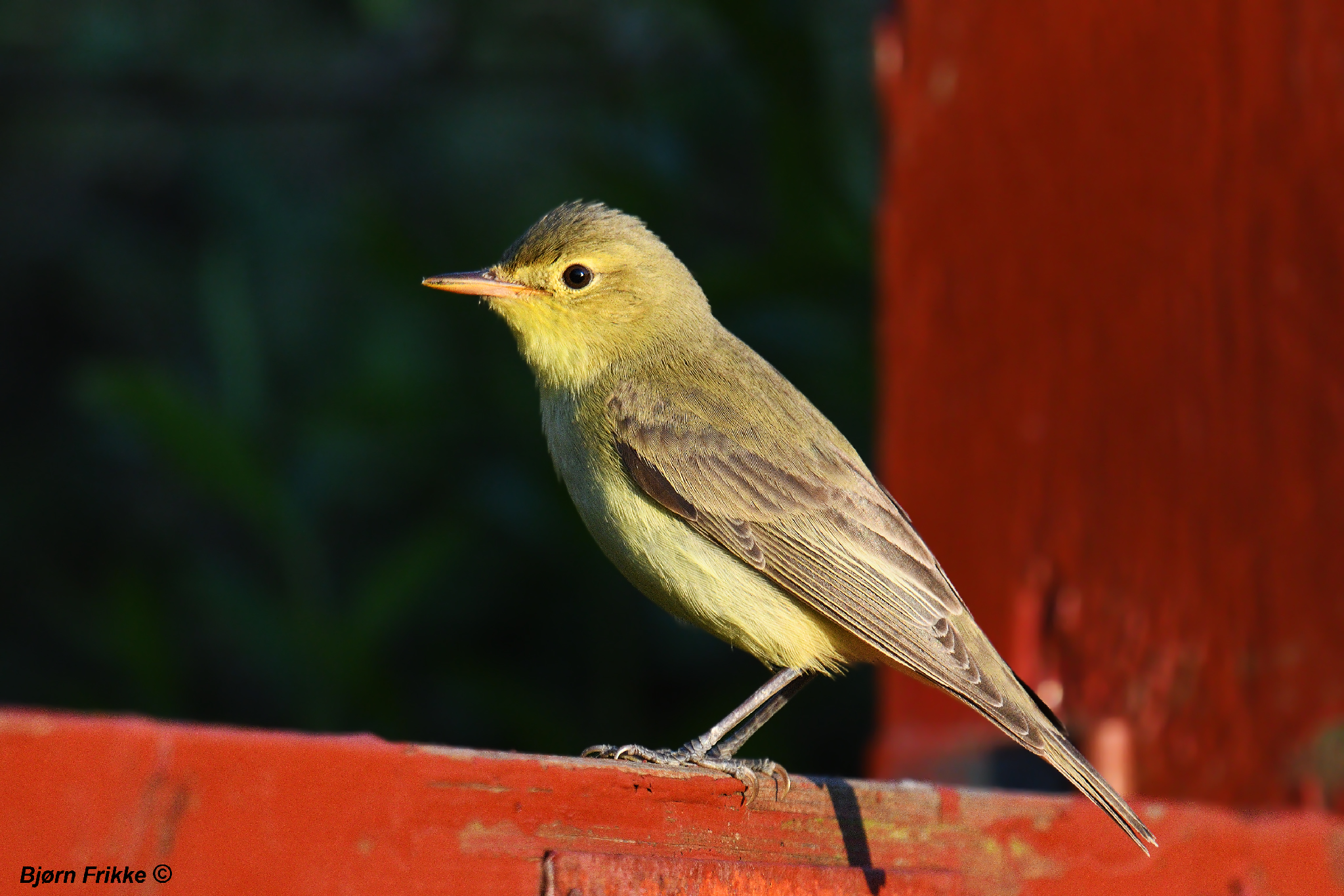 Jeg mærkede desuden fuglen og det var en grålig kortvinget sag med 54 i vingelængde. Fuglen er interessant da den dragtmæssigt mindede rigtigt meget om tristis, kun med gulligt i brynet over øjet og ved vingeknoen og lidt grønligt skær på håndsvingfjerskanterne. Kinden ensartet grå til gråbrun, hvilken plejer at været enten lysegrå hos fulvescens-typerne eller lunere okkerfarvet hos de østligste tristis. Næbbet med ret tydelig lys basis, hvilket formentligt ligger i grænseområdet for hvad man ser hos tristis.