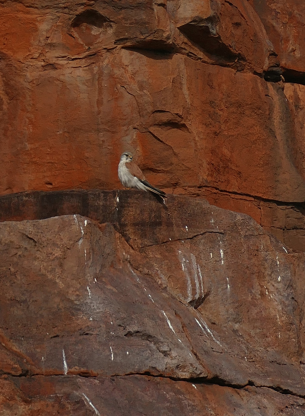Beskrivelse: Et par af de meget delikate White-backed Swallow undersøgte en høj skrænt ved et udtørret flodleje, på jagt efter et sted at udgrave deres redehul, i stil med vores hjemlige Digesvale.