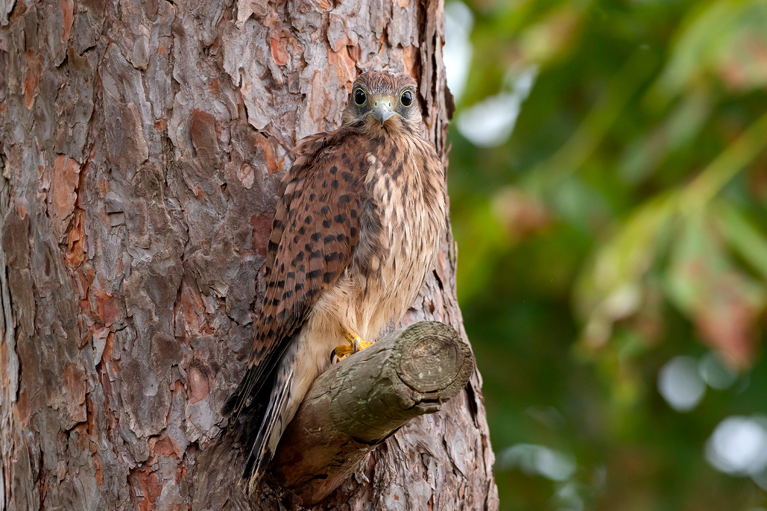 Beskrivelse: Lige nedenfor redehullet var der en lille afsats, som den stod på. Men det blæste meget den dag, så den blev blæst af afsatsen og landede på den afskårne gren. Var flere gange ved at blive blæst yderligere ned.