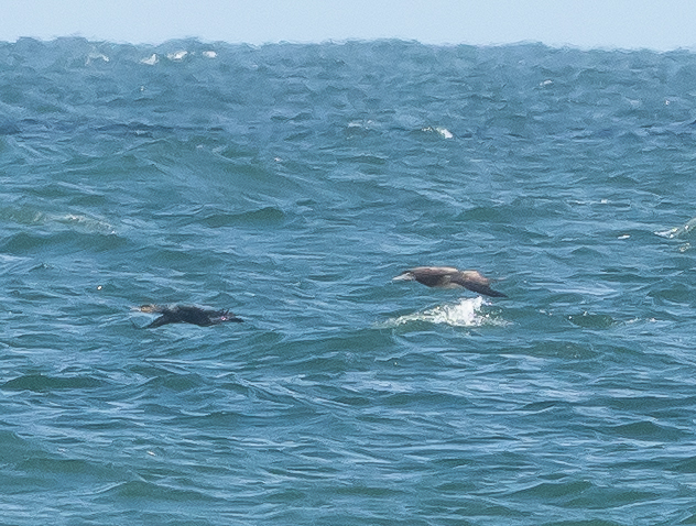 Beskrivelse: De lokale skarver blev næsten lige så ofte som sulerne fejlbestemt til Brun Sule under den ivrige eftersøgning. Overraskende nok så er den faktisk i farvepallet og helhedsindtryk ikke langt fra skarv